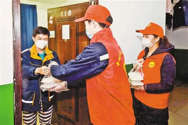 青年志愿者组成的西南铝疫情防控和复工复产青年突击队正在为居家隔离的西南铝职工送餐(图片来自网络)