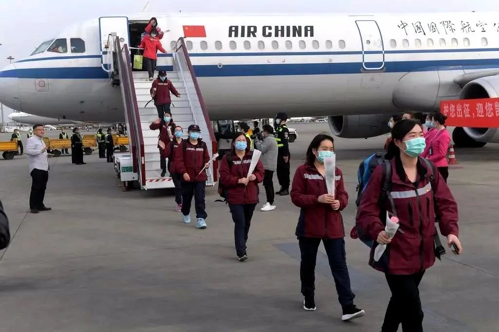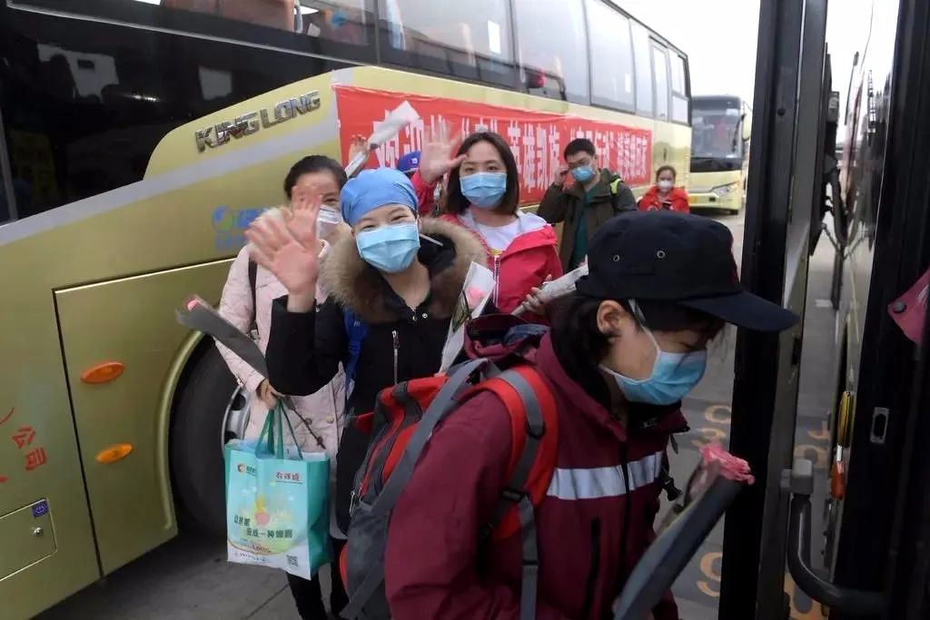 2020年3月17日下午5点左右,四川援助湖北医疗队首批撤离队员返回成都(图片来源:健康成都官微)