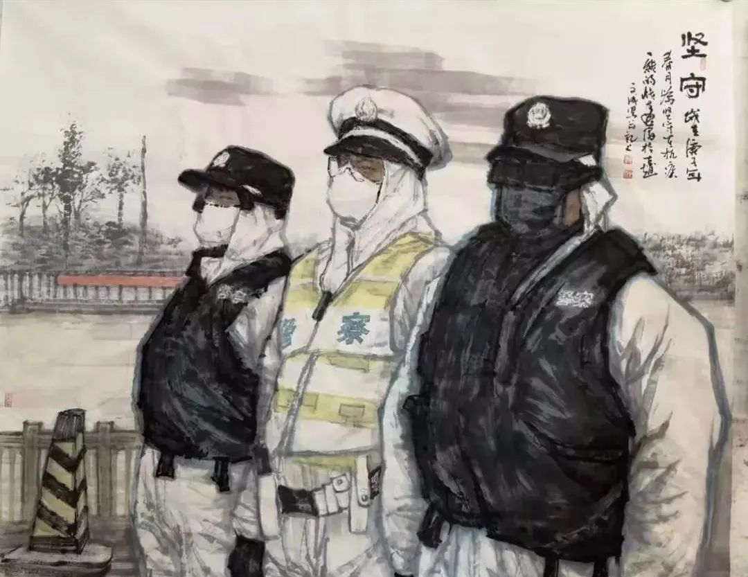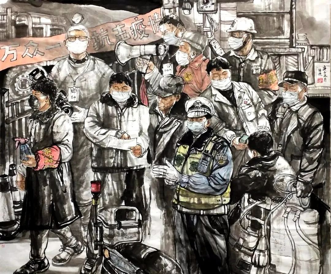 社区保卫战 中国画 陈培进(图片来源:巴蜀画派)