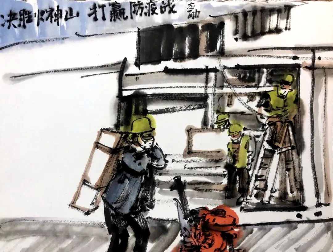 《决胜火神山》中国画 何志勇(图片来源:成都画院)