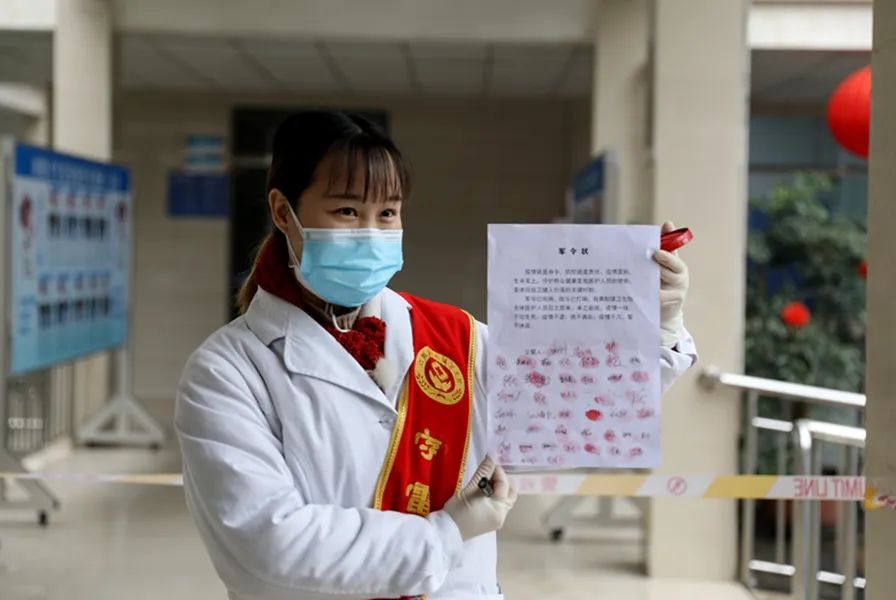 新冠肺炎来袭,泸州市江阳区黄舣镇卫生院的医护人员按下红手印、立下“军令状”(图片来源:四川新闻网)