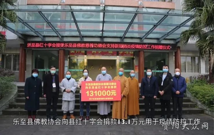 资阳市政协委员、市佛教协会会长莲台寺主持释隆度带领信众慷慨解囊,先后4次向资阳市红十字会捐款8万元。北京资阳企业商会在资阳驻北京联络处主任朱贤军的积极倡议下,第一时间向资阳市红十字会捐款6.7万元。四川兴科林药业向乐至县红十字会捐赠了价值23.17万元的医用物资。