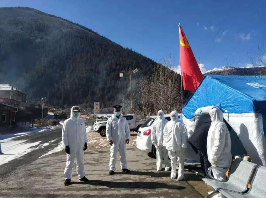 夜色如水,君心似铁。在炉霍的三个卡点内,依然是一群忙碌的身影,他们只有一句誓言:“我们在一线守护,绝不会从我们的手上溜过一例病患”。一一登记,一一检测,其间更有不配合工作的个别群众,他们只能苦口婆心地劝解,每天累计检测上万次。吃的是打包送来的盒饭,忙的时候饭菜凉了也只有凑合着扒拉两口,偶尔用糌粑就着清茶吞咽,在他们眼中这些都是世上最美的佳肴。高原的夜晚寒风彻骨,电炉带来的火光温暖不了漆黑的夜,只有靠着心中的那份执念他们才能坚守,用平凡诠释伟大。鲜艳的党旗迎着寒风飘扬,映着旭日,映着朝霞。愿所得皆所期,所失皆无碍,愿他们的付出终将不被辜负!