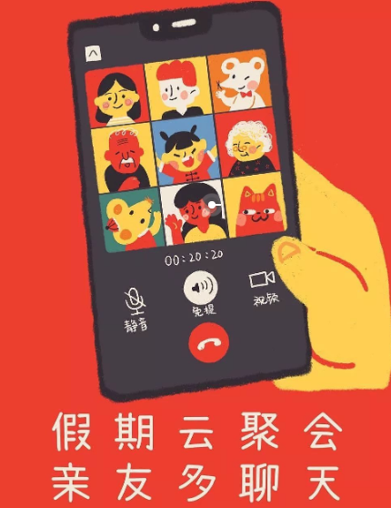 中午12点整,丰盛的饭菜上桌,糖醋排骨、清蒸江团、火爆鱿鱼须、白油菜苔、蹄花炖藕……晗晗在“一家亲”微信群里一声吆喝:“马上进入语音聊天,都打开摄像头。”手机屏幕上呈现出由人脸、饭菜拼成的九宫格,晗晗清清嗓子,开始了主持:“亲爱的家人们,今天是爷爷八十大寿的日子,让我们齐唱《生日快乐》为他祝福。”没有音乐,大家隔屏拍手唱起来,歌声通过网络在北门、东门、西门传递,变成了几个声部的小合唱。接下来是每人一句祝福语、报菜名、敬酒……大伙你一句我一句,刚两岁的曾孙摇摇摆摆满屋乱跑,老父亲对着手机乐得合不拢嘴,老妈不时擦一擦眼角,不停喊着儿子、儿媳、孙子、曾孙的乳名。一大家子隔屏一面吃饭,一面聊天,不时隔空敬一杯酒或饮料,一场别开生面的生日宴会在网络上进行得其乐融融。