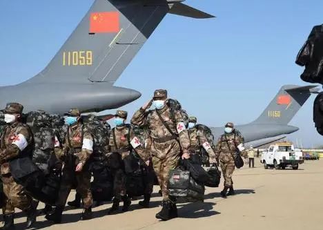 2020年2月17日,解放军援鄂医疗队队员和物资第四次启程(图片来自网络)
