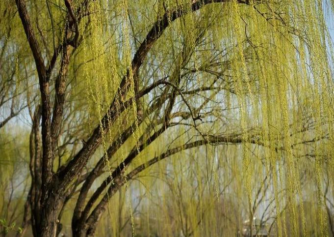 河堤上,最婀娜的还是那一长排柳树了。“不知细叶谁裁出,二月春风似剪刀。”纤细的柳枝上已经爬满了蚕豆般大小鹅黄的苞芽,一串串一丝丝,远望去,如雾如烟,揉绿了天空,如水墨画一样美丽、生动。细长的柳枝,就像小辫子,经春雨清洗,油亮亮的,在春风里飘动着,柔情得很。
