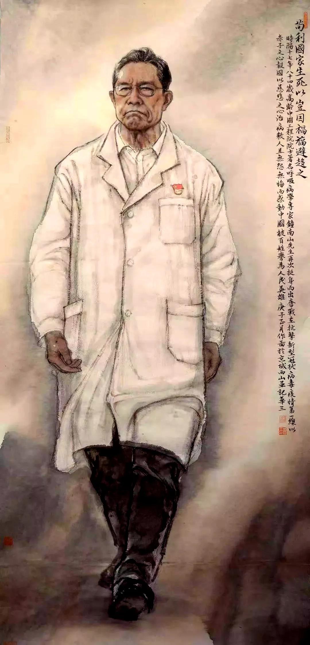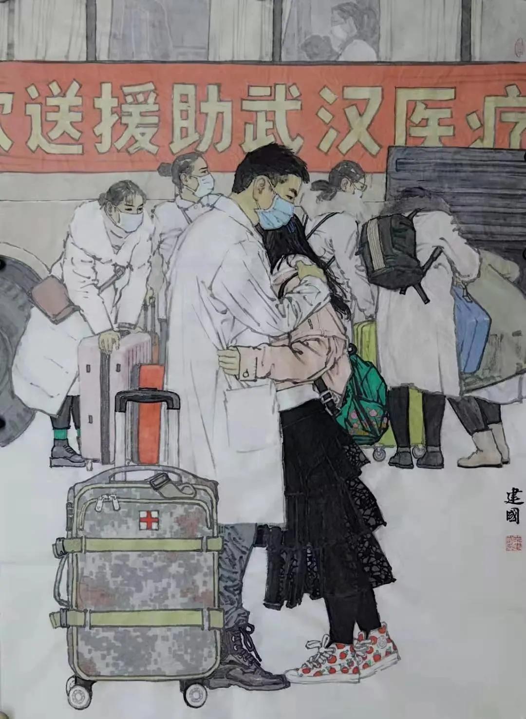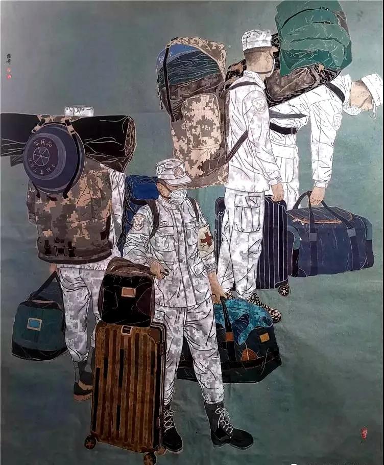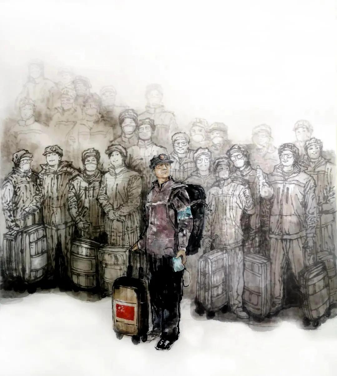 《驰援武汉》中国画 曹念(图片来源:成都画院)