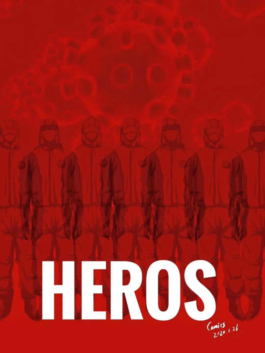 《挡在病毒前的英雄》Comics(图片来源:新华社)