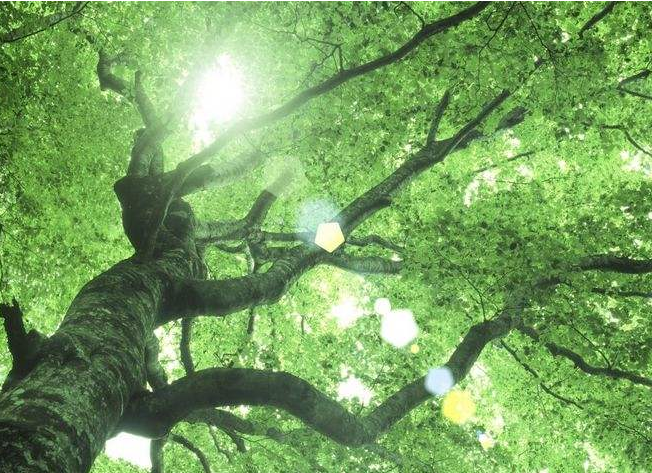 你看!和煦的阳光,透过稠密的树叶洒落下来,点点金色的光斑映入波澜,大地正在变得温暖。