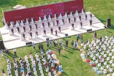 4月25日,在浙江省德清县莫干山郡安里度假村举行的 “2020莫干山大型户外公益集体婚礼”(图片来自网络)