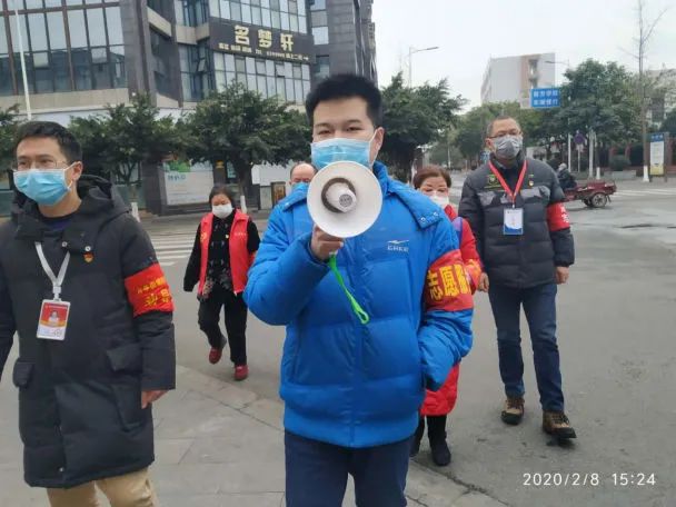 正在这时,我在微信上看见所在社区正在招募志愿者,于是我马上积极报名。社区给我们讲解了如何防止疫情传播的知识,安排我们志愿者一起去各个小区宣传疫情防控知识。我们就在社区主任兼党支部书记蒋佩明带领下,深入东方佳苑、伟业房产、方亭雅筑、什烟库区宿舍区、教师小区等社区和西顺城农贸市场小区等地,开展防控疫情宣传。每到一处,就向社区居民宣传什邡市防控疫情的顺口溜,号召居民居家隔离,不要出门聚集,更不要在这个特殊时期走亲访友。