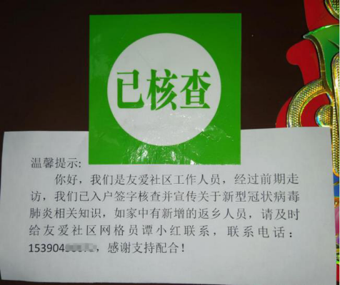每天,社区医院的医生外出测量都会穿着笨拙的防护服、戴着护目镜,为辖区外出返乡人员开展体温测量工作。友爱社区的居民楼大部分都没有电梯,全靠两条腿爬上爬下。每栋楼的居民小组长也是每天在小区内巡查,对返乡人员进行登记,随时掌握所在小区、所在单元楼的返乡情况。正是由于这些基层工作人员的细致工作,都江堰市到目前为止没有一例新冠肺炎确诊病例。在C区,我们遇见了居民小组长正在为一个从福建返乡居家隔离的人员送体温计。因为在家里隔离,不能随时掌握自己的体温,所以就请社区工作人员帮忙购买。除了购买体温计,社区工作人员还要帮他们购买一些生活用品和蔬菜。都江堰市目前每个小区、每个单元楼都贴上了网格员的联系电话,以便住户有需要随时联系,网格员和社区工作人员及时帮助他们解决问题。