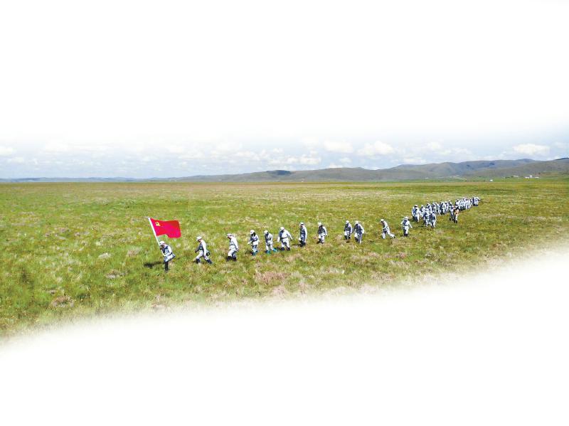 ▲今年6月,在红原县日干乔湿地自然保护区,四川长征干部学院的学员身着红军装,体验当年红军长征走过的草地。牟静洪 摄