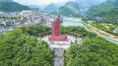 人们在仁怀市红军四渡赤水纪念园参观(7月5日无人机拍摄)。新华社记者陶亮摄