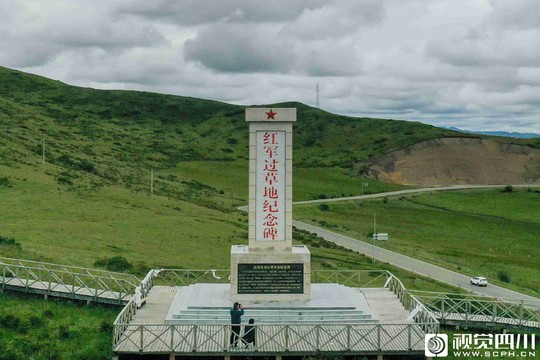 位于红原县日干乔大沼泽的红军过草地纪念碑。