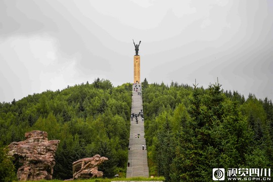 位于松潘县的红军长征纪念碑被誉为“中华第一金碑”。从山脚的红军长征纪念碑碑园向上,迈过600余级台阶,才能走到金色的纪念碑身边。一名参观的游客感慨地说,“越往上越难走,感觉好像到顶了。必须要坚定信仰,一步一步地走上去,才能取得胜利。”