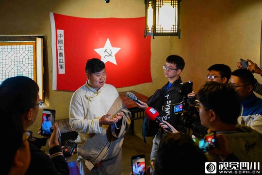 红军长征两河口会议纪念馆的讲解员为记者们讲解。