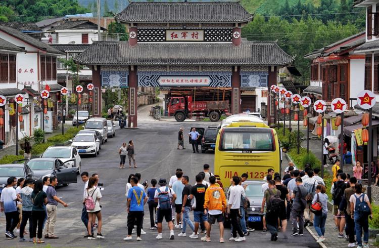 培育红色旅游业态。天全县依托红军村现有旅游发展基础,进一步挖掘红色文化资源,以“红色旅游+”为引领,通过教育、体验、会节、文创、媒介等方式聚集人气商气,加强与石棉安顺场、 泸定泸定桥、 宝兴夹金山干部学院等同质性景区的区域整合,整体打造川西地区知名红色旅游目的地与干部培训基地。同时,坚持构建政府、企业、农户利益共同体,引导群众参与并实施特色民宿打造,带动周边农户发展乡村旅游业,着重培育红色体验业态。目前,红军村道路畅通,景区内游客中心、农家乐、民宿和教学点等相继建起,已具备餐饮住宿、体验娱乐、休闲度假、购物等旅游和研学接待能力。2019年,红军村共接待游客7万余人次,开展大型主题活动8次,开发红色纪念品100多种,综合收入达600余万元。