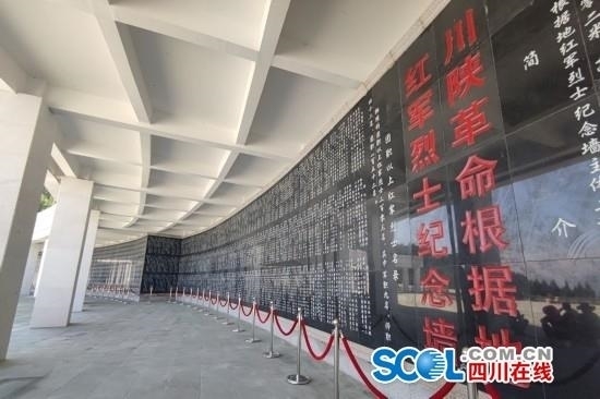 英烈纪念墙,位于无名烈士纪念园顶端,总长102米、高5.9米,墙上刻录了有名字记录的7800多名在通江战斗期间牺牲的红军烈士的姓名。