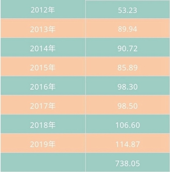 2012-2019年接待游客数