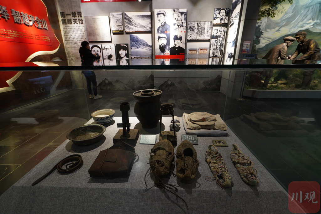 红军长征翻越夹金山纪念馆展示的红色展品。