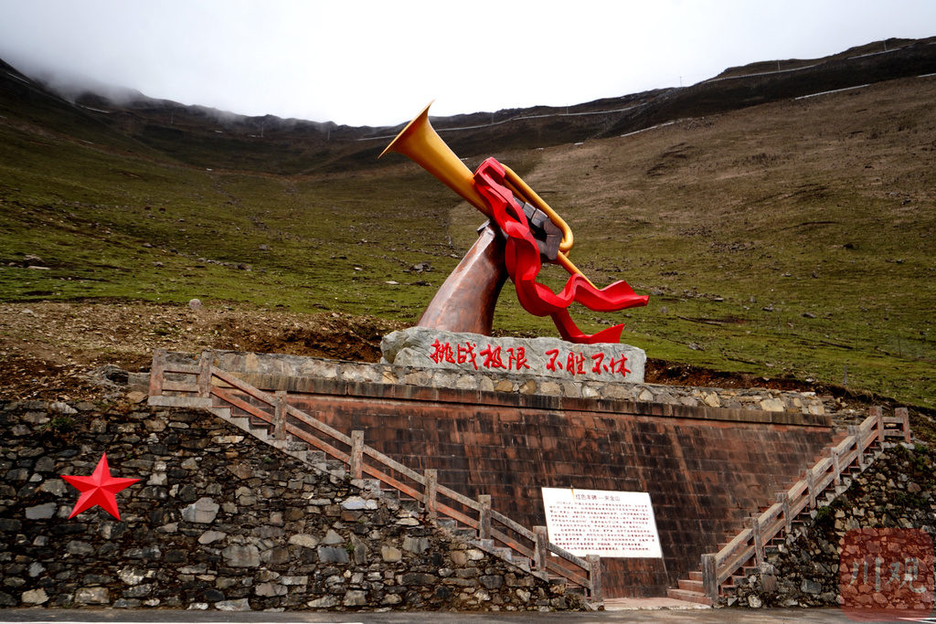 夹金山藏语音译:很高很陡的山。看着犹如一面绿墙阻挡住视线的夹金山,看着盘山公路以之字形延伸进云雾里,不禁想起当地那句民谣:“夹金山、夹金山,鸟儿飞不过,人不敢攀,要想越过夹金山,除非神仙到人间”,站在冲锋号浮雕下抬头望,对这民谣有了最切身的体会。