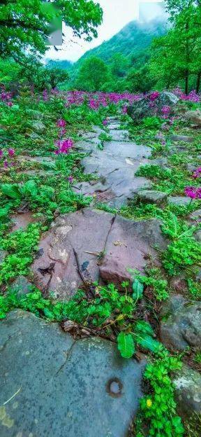 三五株一束,七八株一丛,山花形成的圆形宛如风车一般,一片连一片……红军攻占飞越岭后,飞越岭海拔2400米左右的西北坡和东南坡上,漫山遍野盛开了一种殷红色的报春花,每年5月如期开放。
