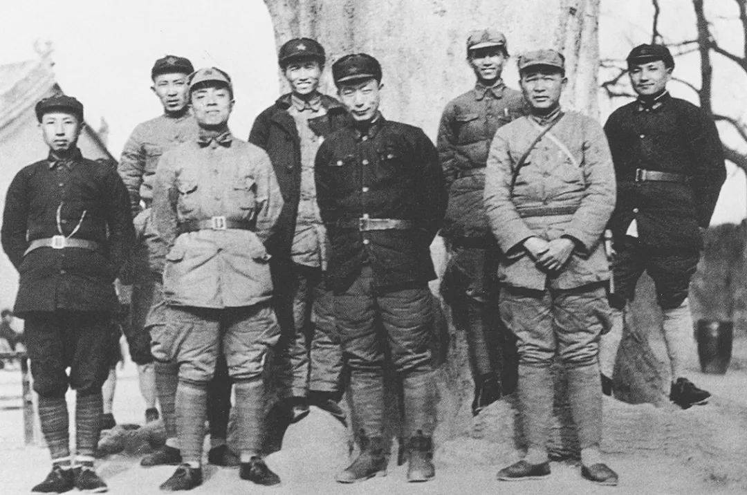 红1军团和红15军团的部分领导干部合影。右起:邓小平、徐海东、陈光、聂荣臻、程子华、杨尚昆、罗瑞卿、王首道。