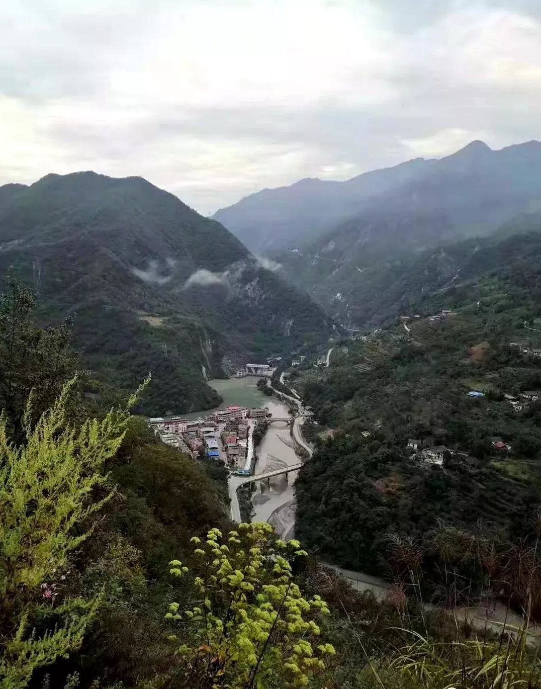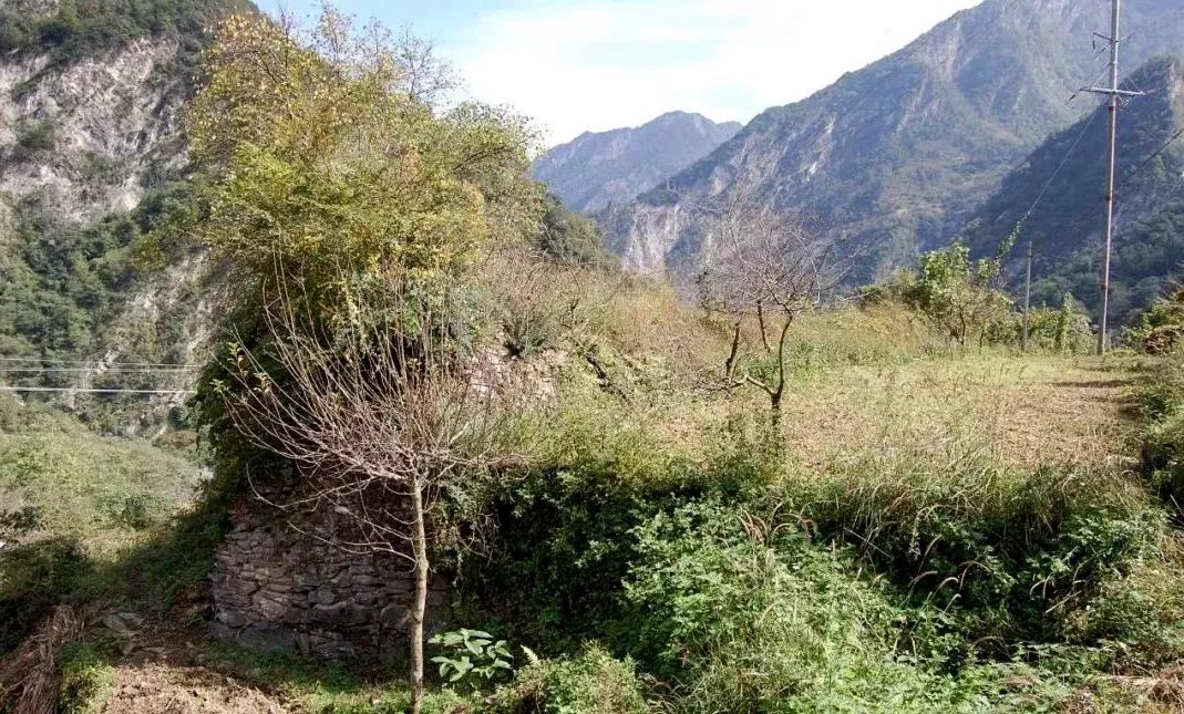 明代城堡石板关遗址(赵柏成 摄)。在沿河公路修通之前,绵茂干道从山坡上的石板关前通过。这座明代官军城堡见证了北川羌族五百多年的历史变迁,如今仅留下残墙断壁,掩映在杂树绿草丛中。每至秋冬时节,叶落草枯,还能看出城堡的大致轮廓。