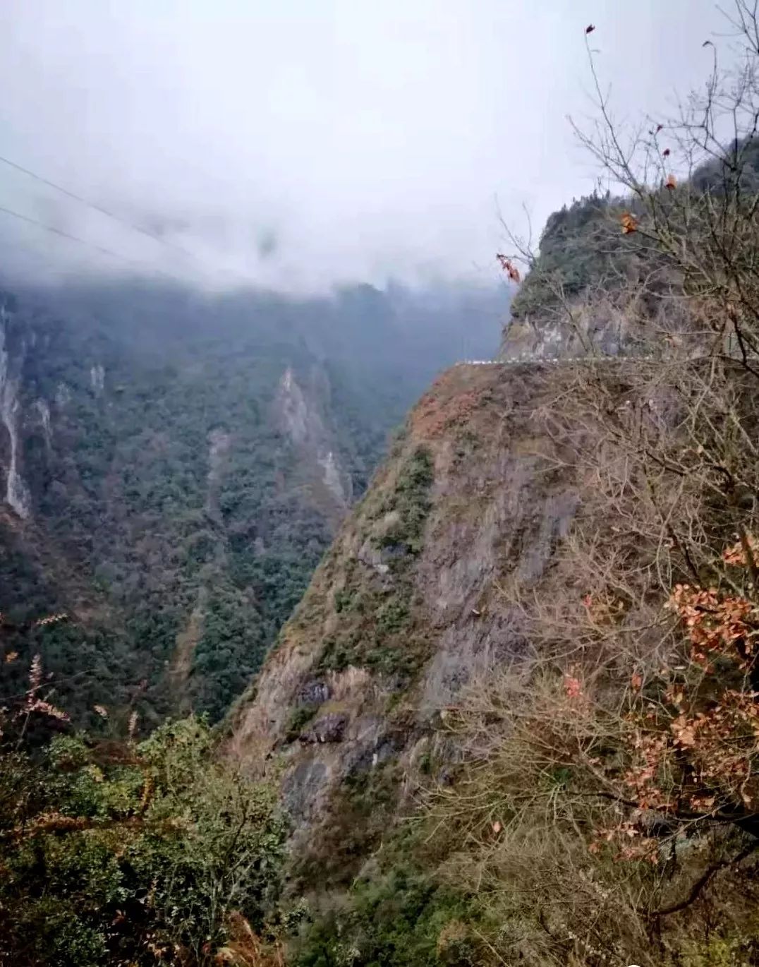 从悬崖上穿行的支前路,半山以下路段已建成乡村公路(蹇斌 摄)