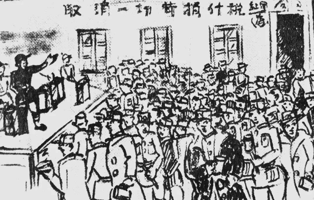 中央到了陕北之后,最开始住在瓦窑堡,就是今天的子长县。瓦窑堡那个地方,当年也是穷乡僻壤。红军到了瓦窑堡住下来的时候,当时红军回忆,说住在破窑洞里,连门都没有。他们当时觉得有窑洞住已经比在草地露天住好多了,住在窑洞里,晚上就找一些柴火,点一堆火,度过寒夜。结果山上的狼看见有火,跑到窑洞里来取暖来了,战士们睡醒一看,怎么有一只狼在窑洞里,赶紧把狼给打走。当年红军刚到陕北的时候,就穷到这种地步。怎么办?首先得解决生存问题。