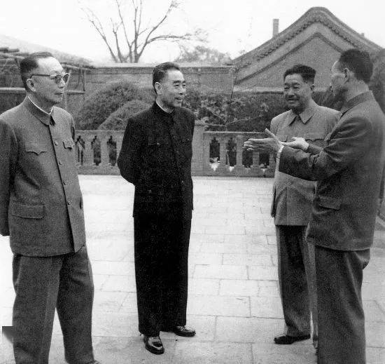1963年4月,周恩来和专委会成员贺龙、聂荣臻、张爱萍等在中南海