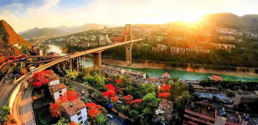 “花是一座城,城是一朵花。”四川最南端的攀枝花市,正盛开着火红的攀枝花。这座繁华的现代都市,也如花一样,绽放在祖国的西南腹地。
