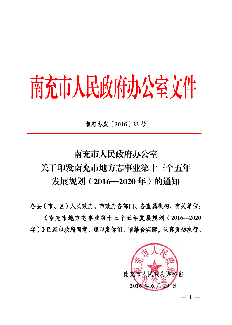 南充市人民政府办公室关于印发《南充市地方志事业第十三个五年发展规划(2016—2020年)》的通知 南府办发〔2016〕23号 来源:南充市人民政府办公室 发布时间:2019-12-03 10:47:36 浏览次数: 次 【字体:小 大】 扫一扫在手机打开当前页 分享到: 【打印正文】