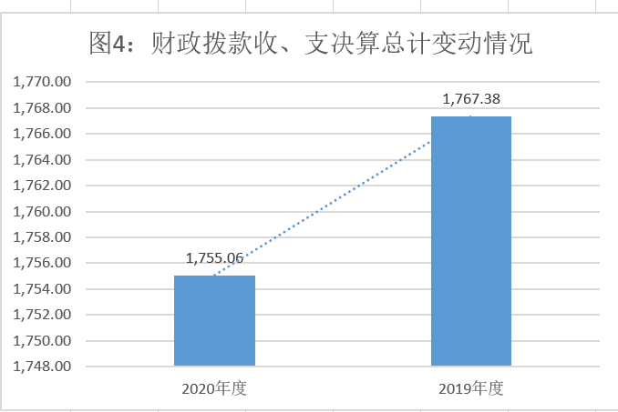 2020年财政拨款收、支总计1755.06万元。与2019年相比,财政拨款收、支总计各减少12.32万元,下降0.70%。主要变动原因是年终追减办公用房维修费和压缩三公经费开支。