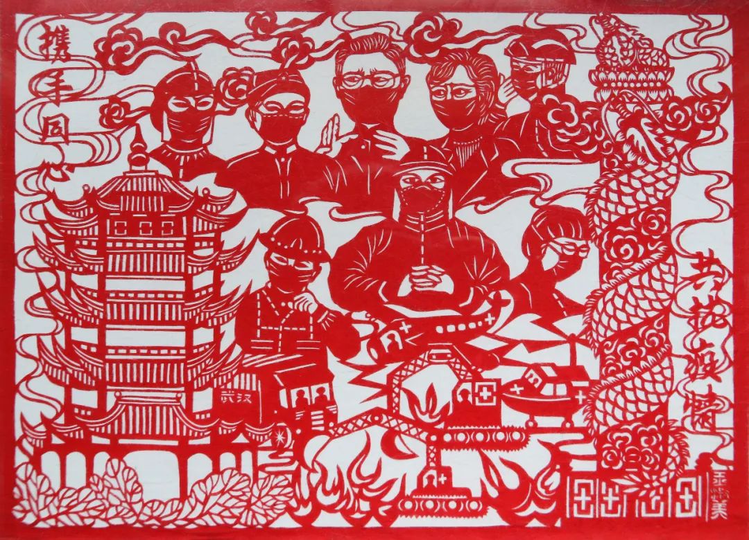 剪纸《携手同心 共抗疫情》( 王淑美 作品)